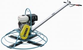 Двухроторная затирочная машина управляется сидящим на ней оператором. Машина укомплектована мощным бензиновым двигателем Honda GX390 мощностью 11.7 л.с. (8.7 кВт) с электрическим запуском.