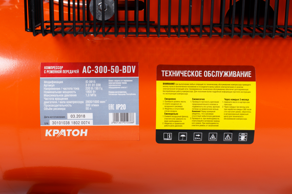Компрессор Кратон AC-300-50-BDV, с ременной передачей, обладает высокими показателями рабочего давления и производительности, и совместим практически со всеми пневмоинструментами. Благодаря выносливости и возможности длительной и беспрерывной работы компрессор применяется как в быту, так и на производстве, в цеху или на СТО. Ременная передача обеспечивает плавность старта и мягкую работу, без резких рывков и излишнего шума. Защитный кожух и предохранительный клапан увеличивают износостойкость оборудования и делают работу с ним простой и безопасной.